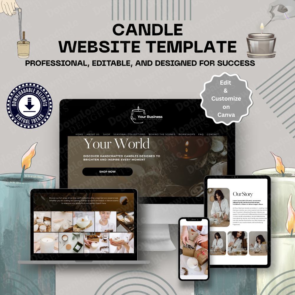 Create a stunning candle business website without any tech skills or coding required. This Canva-editable Candle Website Template is perfect for candle makers, small business owners, and handmade product sellers looking to build a warm, inviting, and professional online presence.